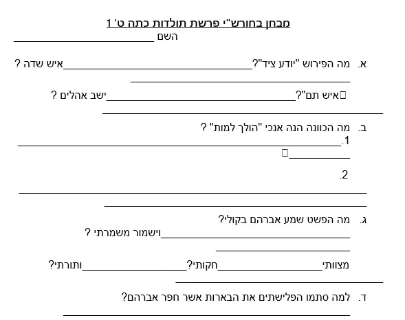 תולדות – מבחן חומש כתה ט