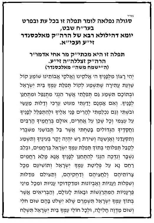תפילה ער"ח שבט