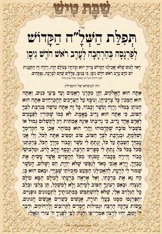 תפילת השל"ה הקדוש לערב ראש חודש ניסן